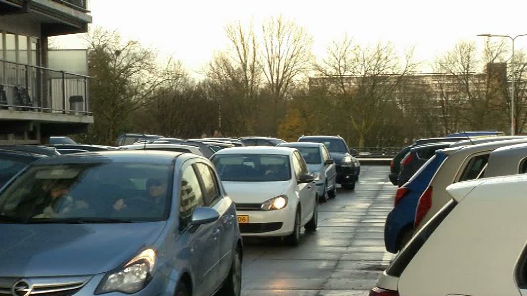 Parkeren bij Winkelcentrum Sterrenburg is een ramp. Het is zo druk dat er de gehele dag een file op het parkeerdek staat.