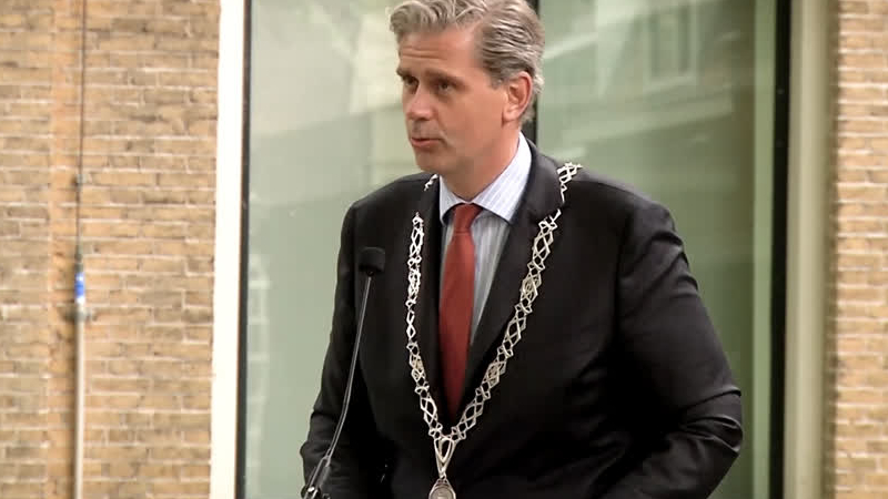 Burgemeester Wouter Kolff van Dordrecht was een van de sprekers tijdens de Keti Koti herdenking, waa...