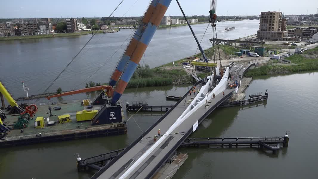 Aan de kade dus een flinke drukte. Mede door het mooie weer dinsdag. “Dit wordt een verrijking voor de stad,” zegt een man die straks niet langer hoeft om te fietsen. ¨We moeten nu om Villa Augustus heen fietsen, maar we houden van een borreltje en straks kunnen we zelfs wandelen.” Een andere toeschouwer vindt het indrukwekkend om te zien, maar vraagt zich af waarom de fiets- en voetgangersbrug zo “prestigieus” moet zijn: ¨Het had naar mijn idee best wel iets rustiger gekund en dan met het overgebleven geld Molen Kyck over den Dyck steunen.¨