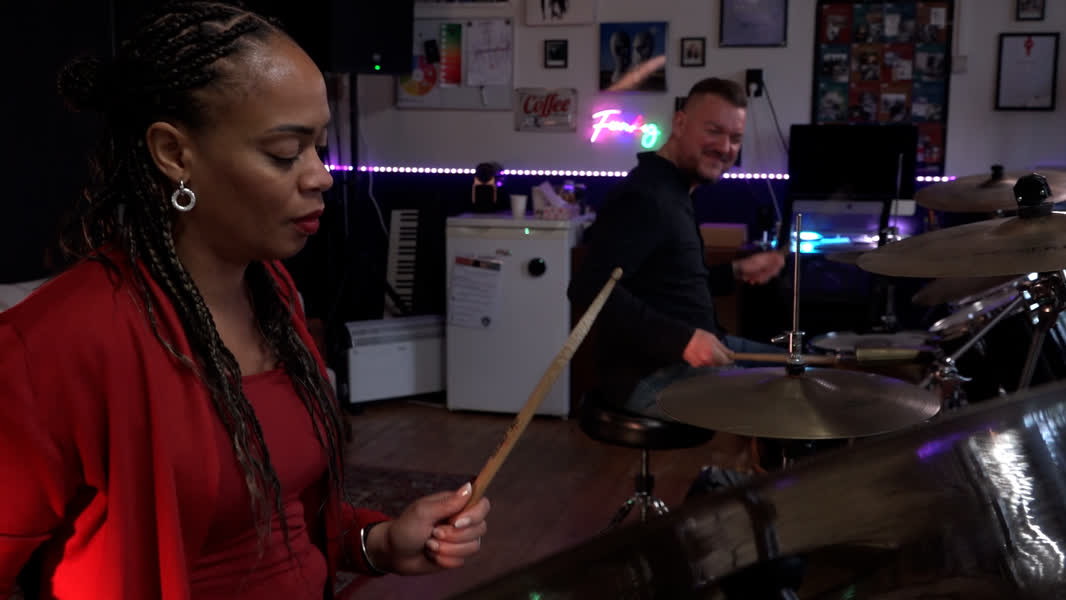 Dat ervaart Denise Noslin ook. Ze kwam bij Jens terecht toen ze spontaan besloot om drumles te nemen. Als Denise ontdekt dat er ook nog een vorm van coaching bij komt kijken, besluit ze de stap te wagen. “Ik had niet verwacht dat we meteen samen muziek gingen maken. Toen kwam ik erachter dat ik niet per se iets hoef te kunnen, of te leren, en dat nam de druk voor mij gelijk weg.”