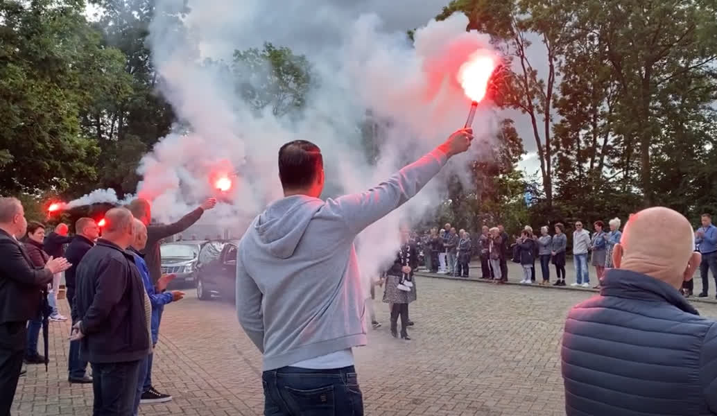 Met een erehaag met fakkels en op de klanken van ‘You’ll Never Walk Alone’ nam voetbalvereniging Dubbeldam donderdag afscheid van penningmeester Frans de Bruin. Tientallen Dubbeldammers, sportvrienden en andere belangstellenden kwamen bijeen om hem een laatste eer te bewijzen.