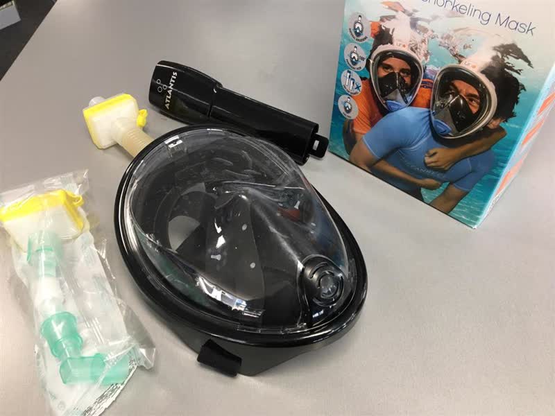 Het gaat om zogeheten volgelaatsbrillen. Dat zijn duikbrillen die vrijwel het hele gezicht bedekken. De snorkel wordt vervangen door een luchtfilter, dat 24 uur bescherming biedt tegen virussen.