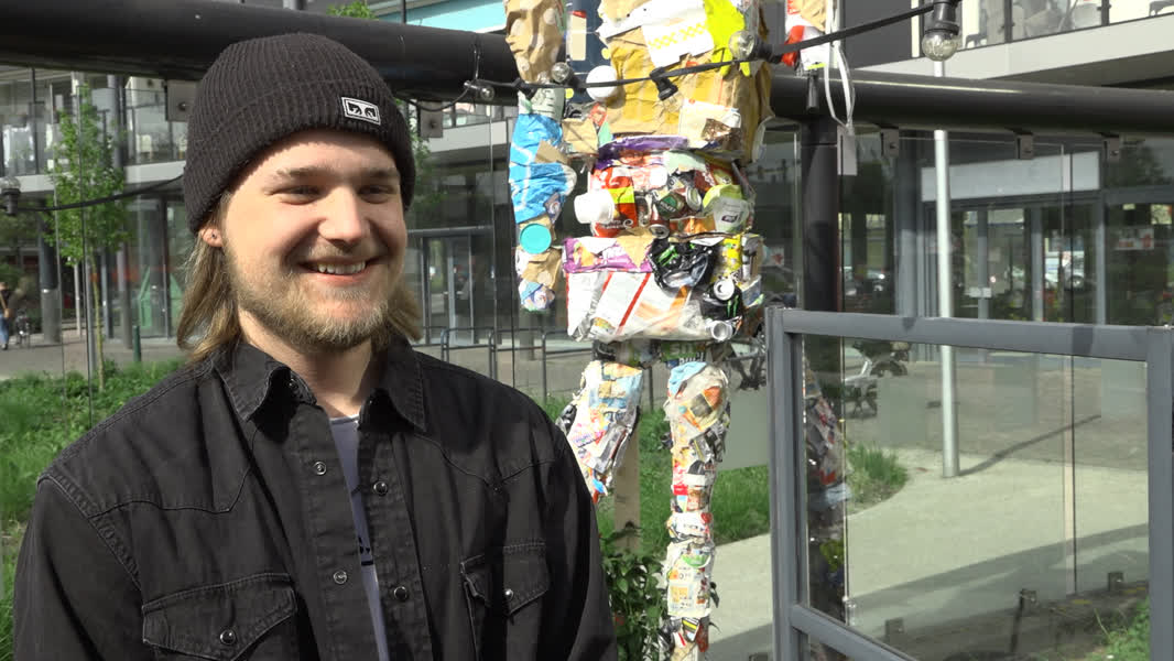 Je kan er niet omheen op het terras van restaurant Verhagen. Mensen die er voor het eerst langs lopen zullen even gek opkijken; zwerfafval verwerkt tot een kunstwerk. Maar dat is precies het doel van Van Herpen. "Ik wil vooral dat mensen erbij stilstaan en denken: wat zie ik nou daadwerkelijk? Ik wil dat mensen denken: het afval wat hierop zit, hadden we kunnen voorkomen door het in de prullenbak te gooien."