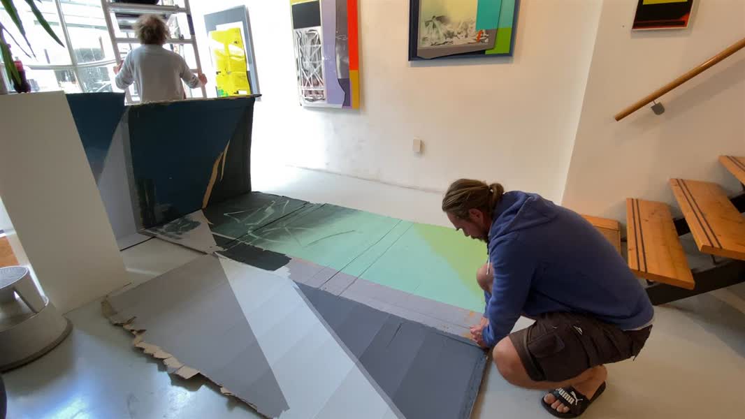 In Galerij Wijnstraat in de binnenstad wordt de huidige expositie aangevuld met een nieuw kunstwerk van zowel Rob Vis als Edwin Janssen. Samen waren ze al met schilderijen te zien in de galerij en nu zullen zij samen een 'mural' maken op een stuk karton. Dit komt voor het grote raam van de Wijnstraat te hangen.