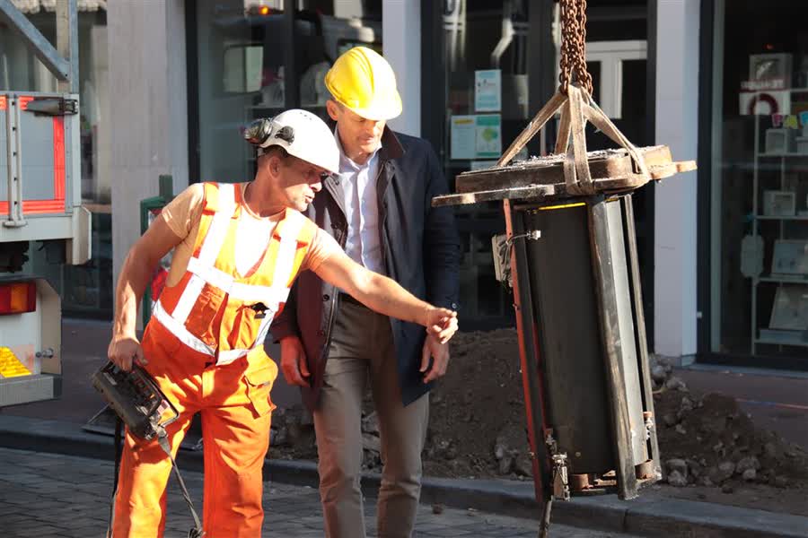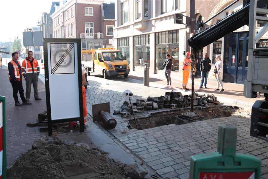 De pollers in de binnenstad zijn sinds juli vervangen door een camerasysteem. Maandagochtend takelde wethouder Rik van der Linden in de Visstraat de eerste poller ook daadwerkelijk uit de grond.