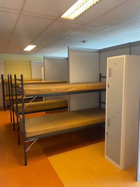 Aan de Marconiweg is slaapplek voor 170 vluchtelingen. De mensen krijgen een stapelbed met een  wandje tussen de bedden voor wat privacy. Douches en toiletten zijn ingericht in dixi-achtige ruimtes. Mannen en vrouwen slapen gescheiden, maar de voorzieningen zijn basaal. “We doen het beste wat in onze macht ligt, maar het is allemaal geen vetpot”, aldus zegsvrouw Wayers, die benadrukt dat het vooral de prioriteit heeft zoveel mogelijk vluchtelingen binnen te laten slapen, na alle ellende van het buiten slapen in Ter Apel. “We hebben in Dordrecht gekeken hoe we zoveel mogelijk bedden kunnen neerzetten.” De matrassen zijn beschikbaar gesteld door het Rode Kruis.