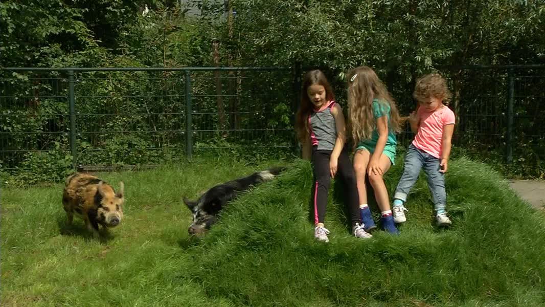 De varkens hadden al snel de smaak te pakken en knabbelden er vrolijk op los. Maar dat is niet erg, volgens Leemkuil. Het gras kan zo opnieuw worden ingezaaid.
