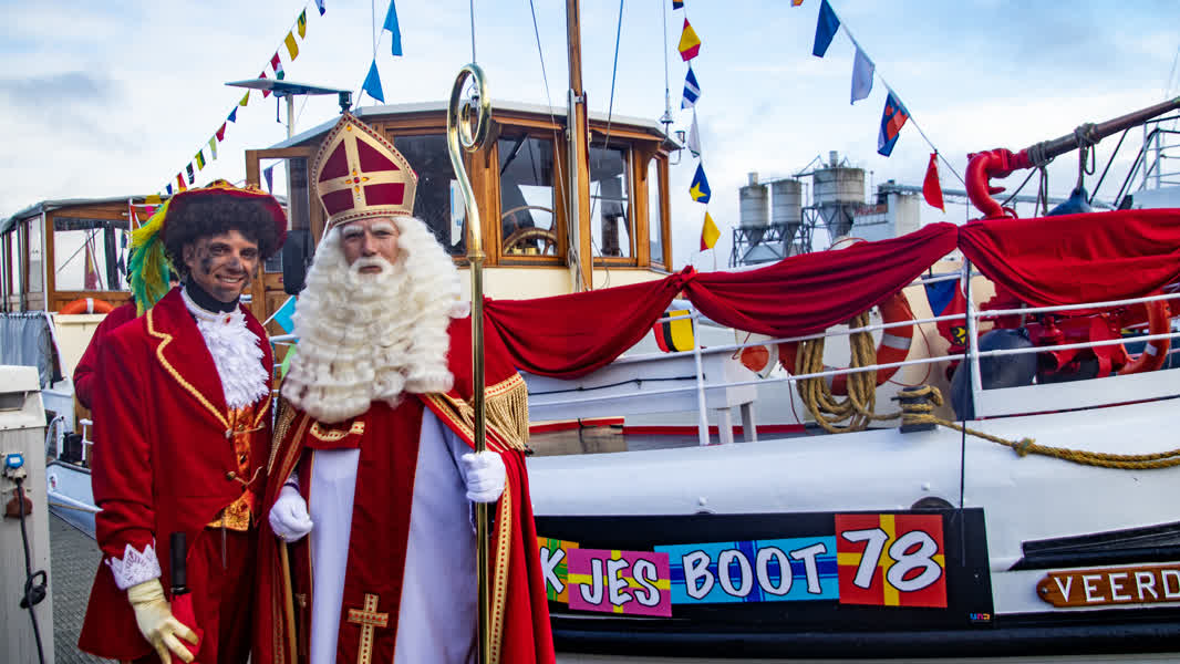 - 12:30 uur: Contact met de Sint op schermen, goedheiligman aan wal en op het podium