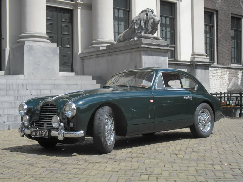 Het is een British Racing Green Aston uit 1954 met chroom spaakwielen en voorzien van Mille Miglia stickers. Het chassisnummer is LML770.