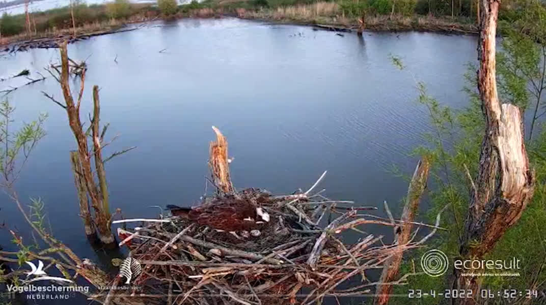 'Een goede start aan een veelbelovend seizoen schrijft de Vogelbescherming bij ene video van de visarenden waarop het tweede ei goed te zien is. Enkele dagen eerder werd het eerste ei al gespot.