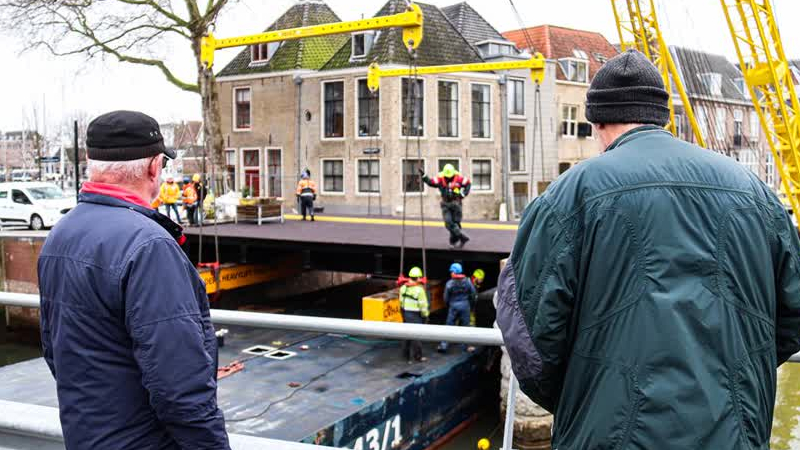 Na bijna twee jaar is de Engelenburgerbrug weer naar zijn vertrouwde plek in de Dordtse binnenstad g...