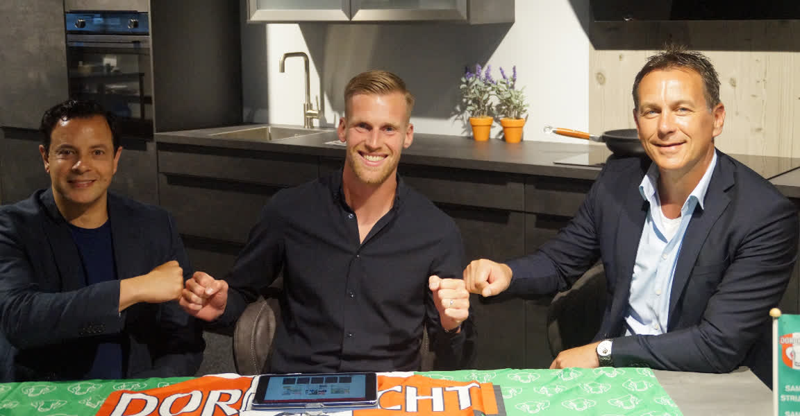 "Indien promotie zou ik blijven", reageert hij op zijn tweede jaar bij De Graafschap, waar hij zag dat zijn club in de laatste wedstrijden promotiekansen verspeelde. "Dat viel weg, dus op dat moment moest ik schakelen en op zoek naar een nieuwe club. Toen is mijn zaakwaarnemer bij Dordrecht gekomen. Het plan waar de club mee aan de slag wil, sprak mij aan en triggerde mij om daar wat meer over te weten komen. En nu staan we hier tussen de keukens", verwijst hij met een brede glimlach op het gezicht naar de hoofdsponsor Keukenwarenhuis, waar de verdediger zijn handtekening onder een tweejarig contract zette.