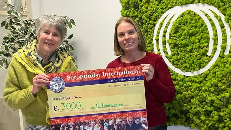 Soroptimistclub Merwekring, een club die zich inzet voor vrouwen en meisjes, heeft een cheque van 3....