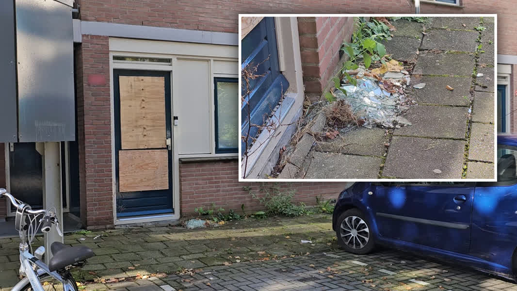 De woning aan het Pearl Buck Erf is beschadigd | Inzet: Glasscherven liggen op de grond voor de woning RTV Dordrecht
