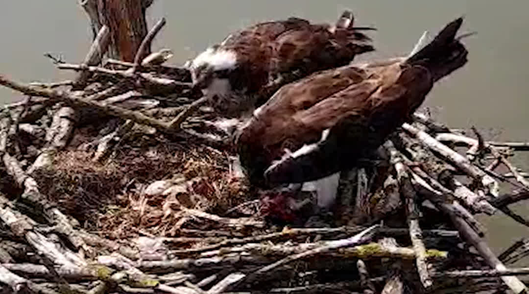Terwijl papa en mama visarend hun klauwen al vol hadden aan het voeren van het eerste en tweede kuiken, kroop dinsdag ook nummer drie te voorschijn.
