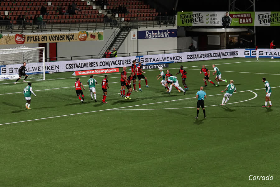 In de rust had de goalie – met kenmerkende Belgische tongval – misschien wel uitzicht op zijn eerste ‘clean sheet’ wedstrijd in vijftien Keuken Kampioen Divisie-duels. Tien minuten later kon dat positieve vooruitzicht de prullenbak in en verruilde Bossin, zo zegt hij zelf, die hoopvoor schaamte.