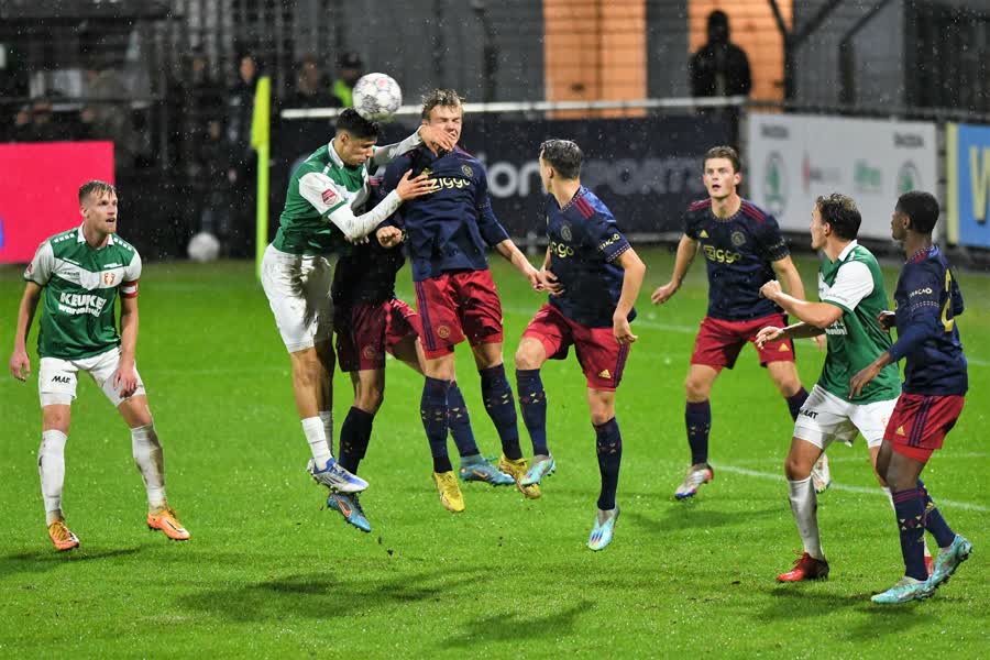 Na ruim twintig minuten openden de Amsterdamse beloften de score via Silvano Vos, maar een kwartier later tekende Feyenoord-huurling Tidjany Touré voor de gelijkmaker: 1-1. Het voorbereidende werk was van de Fransman Malhory Noc, die dit seizoen vooral met blessures kampte en tegen Jong Ajax voor het eerst in de basisopstelling te vinden was.