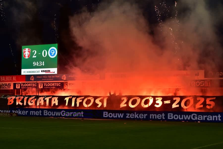 In de blessuretijd van dat duel, toen FC Dordrecht met 2-0 leidde en het seizoenseinde van De Graafschap aanstaande was, werd er massaal vuurwerk afgestoken. Scheidsrechter Sander van der Eijk staakte niet, maar floot voortijdig af.
