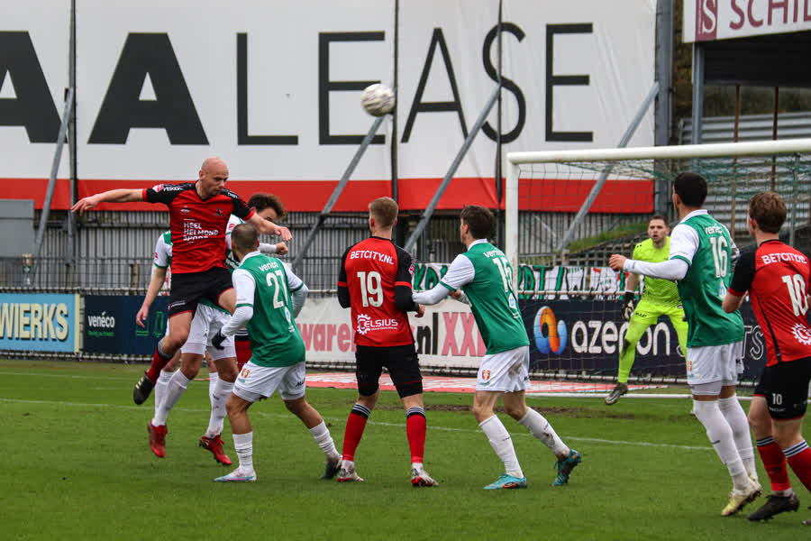 Met onder meer Vincent Schippers en Abdallah Aberkane in de basiself, liet de ploeg van trainer Michele Santoni wel strijd zien, maar kwam het vooral tot halve kansen. Samuele Longo kwan met zijn hoofd net niet bij een voorzet en Helmond-doelman Mike Havekotte voorkwam even later dat Schippers vanaf de zijlijn scoorde.