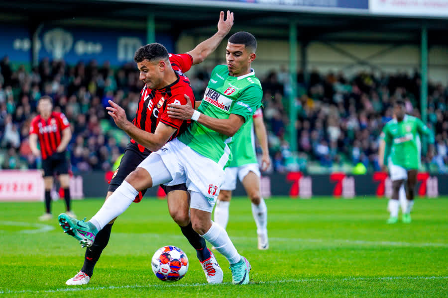 Aan de overkant werd de voorsprong bijna verdubbeld. Na een prima aanval raakte Korede Osundina de paal in een poging het beslissende zetje te geven. De Dordtse invaller en ex-Willem II'er Jari Schuurman waagde even later een poging, die een meter naast het doel van Smits belandde.