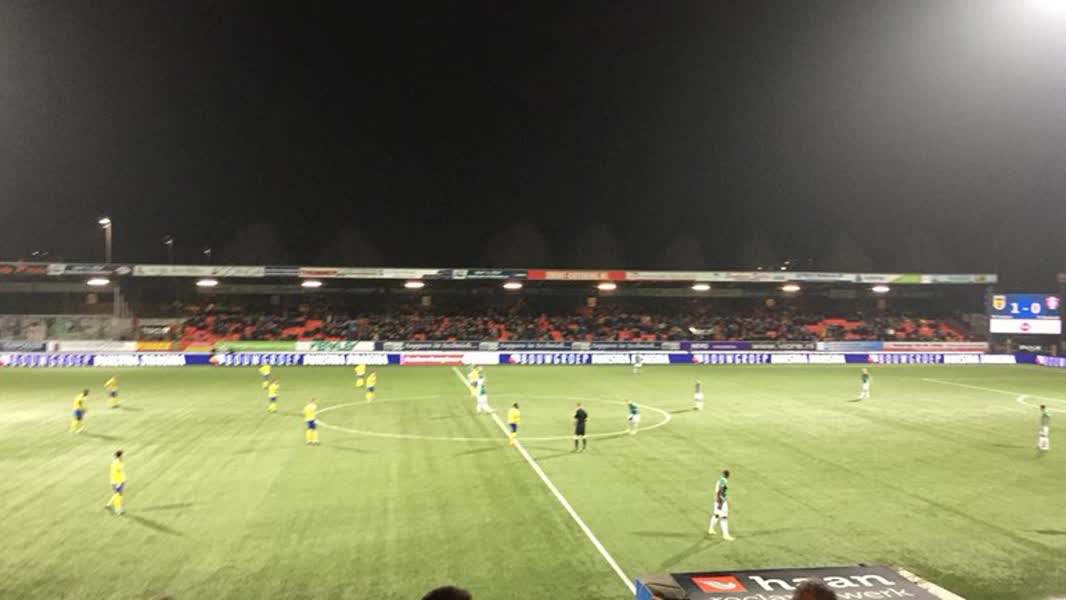Maar het venijn zat in de staart van Cambuur-FC Dordrecht. De Schapenkoppen kregen van scheidsrechter Christian Mulder in de laatste minuut van de officiële speeltijd een strafschop, maar daar waren de fans van Cambuur absoluut niet mee eens. Een aantal mensen van het thuispubliek gooide munten en bier op het veld, waarna Mulder genoodzaakt was het duel tot tweemaal toe tijdelijk stil te leggen.