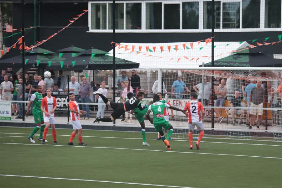 Het antwoord van de bezoekers volgde al na vier minuten: Noah Lewis, al eerder actief voor Dordt, bezorgde zijn ploeg weer een voorsprong met een kopbal.