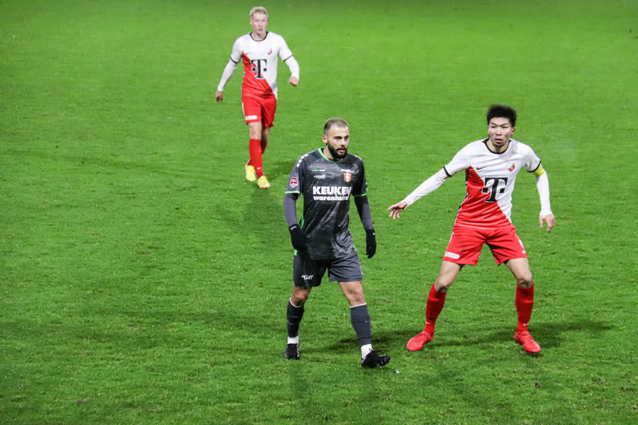 Het regenachtige veld en het ontbreken van middenvelders Jari Schuurman en Mathis Suray was ook niet in het voordeel van de bezoekers, ziet Santoni. Aanwinst Sahverdi Cetin, die vrijdag werd gepresenteerd, mocht meteen starten. "Hij neemt veel ervaring mee, ook al is hij nog jong. Hij weet wat strijden betekent en vindt het niet erg om vies van het veld te komen."