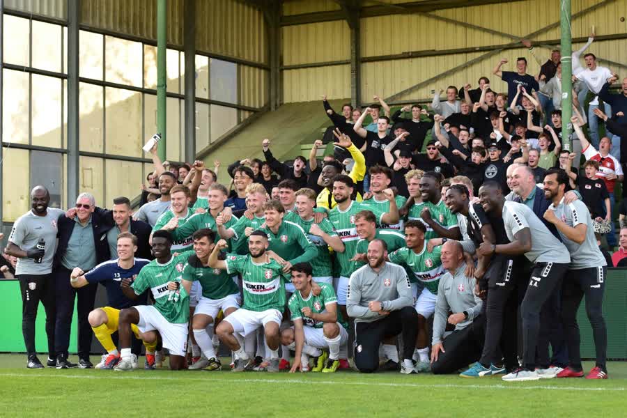 In de slotfase gooide invaller Joep van der Sluijs het duel definitief in het slot. Na een pass van Lawson Sunderland trok hij naar binnen en krulde de bal op fraaie wijze in de kruising: 4-0. Met nog een wissel van trainer Melvin Boel — Yannis M’Bemba voor Sem Valk — speelden de Dordtenaren de wedstrijd gecontroleerd uit. De supporters kregen waar voor hun geld en zorgden voor een feestelijke sfeer op de Krommedijk.