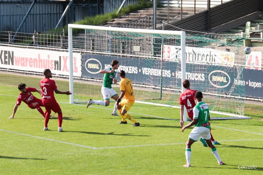 FC Dordrecht heeft vrijdagavond een punt overgehouden aan het treffen met Almere City. In Flevoland werd het 2-2: een resultaat dat toch enigszins zuur zal voelen bij de ploeg van hoofdtrainer Michele Santoni. Dit omdat de Schapenkoppen na 35 minuten nog met 0-2 leidden.Die voorsprong kwam tot stand dankzij Nikolas Agrafiotis en Mauro Savastano. Na een kwartier was de spits trefzeker na goed voorbereidend werk van medespits Stijn Meijer en linkerverdediger Savastano. Laatstgenoemde dook twintig minuten later als een duveltje uit een doosje op in de zestienmeter en verschalkte doelman Michael Woud met een schuiver: 0-2.AansluitingstrefferMet een marge van twee leek Dordrecht de rust te halen, maar Bradly van Hoeven pakte een cadeautje van Jop van der Avert uit en schoot de 1-2 op het scorebord.De Dordtenaren lieten het via Meijer na om de voorsprong verder uit te bouwen. Daar maakten de Flevolanders, met in het team oud-Schapenkoppen Daniël Breedijk en Thomas Poll, dankbaar gebruik van: Jonas Arweiler stond uit het niets vrij en maakte gelijk.