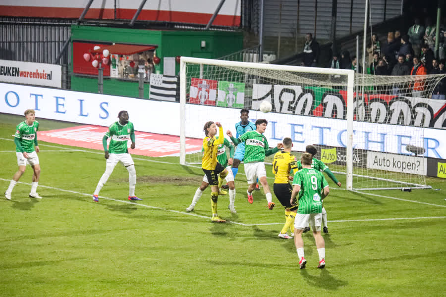 Aan een koude Krommedijk begon de ploeg met dezelfde namen als zes dagen eerder, toen een 0-1 zege werd geboekt bij Helmond Sport. In Brabant maakte FC Dordrecht al binnen twee minuten het verschil en ook tegen Roda JC lag de eerste treffer er al vroeg in. Want na een vlotte aanval via Jari Schuurman en Jaden Slory kopte Devin Haen op knappe wijze zijn negende van het seizoen binnen: 1-0.