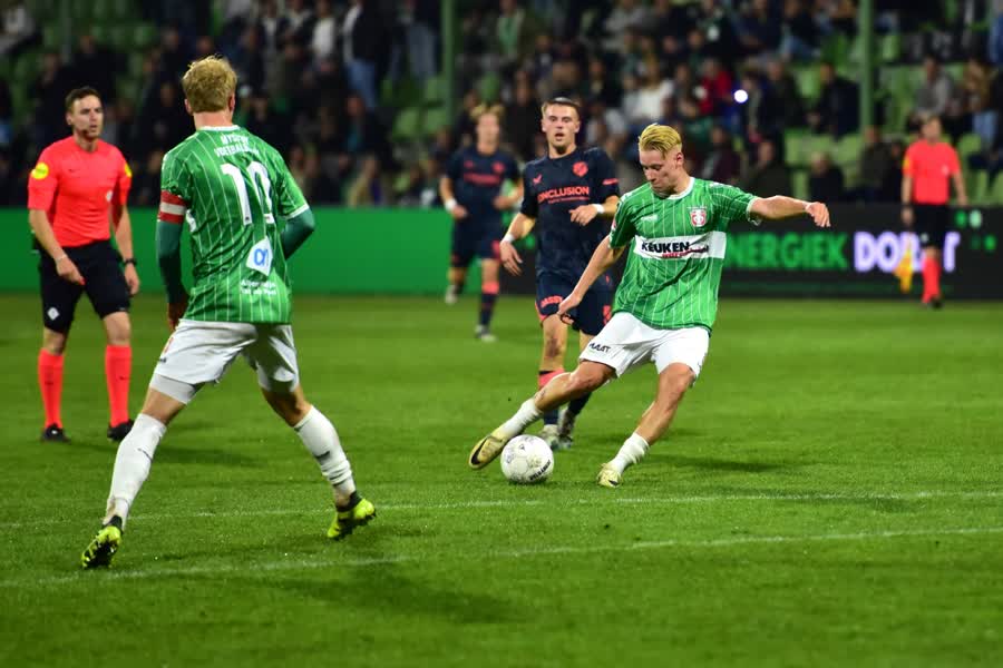 In het laatste halfuur maakten Feyenoord-huurling Jayson Ezeb en zomeraanwinst Reda Akmum nog hun competitiedebuut voor FC Dordrecht. Voor Akmum extra bijzonder: de centrumverdediger heeft namelijk 35 Keuken Kampioen Divisie-duels voor uitgerekend Jong FC Utrecht op de teller staan.