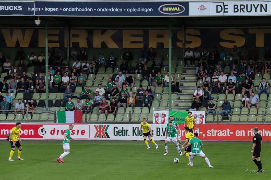 De thuisclub kon aan het begin van de tweede helft ook niet overtuigen en daarom koos Santoni voor 4-3-3 met invaller Jacky Donkor op links en Agrafiotis rechts.