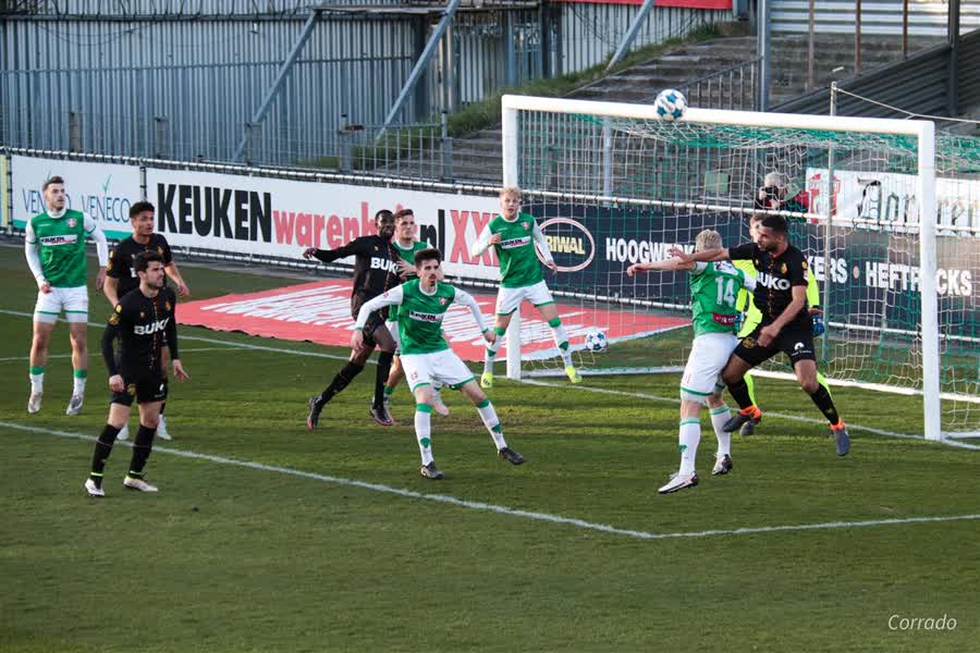 Opstelling FC Dordrecht: Van Herk, Hobbel, Aktas, Silva, Poll, Ugur (Pugliese/76), Schuurman, Jansen, Musaba, Agrafiotis (Suray/68), Bannis&t=42s
