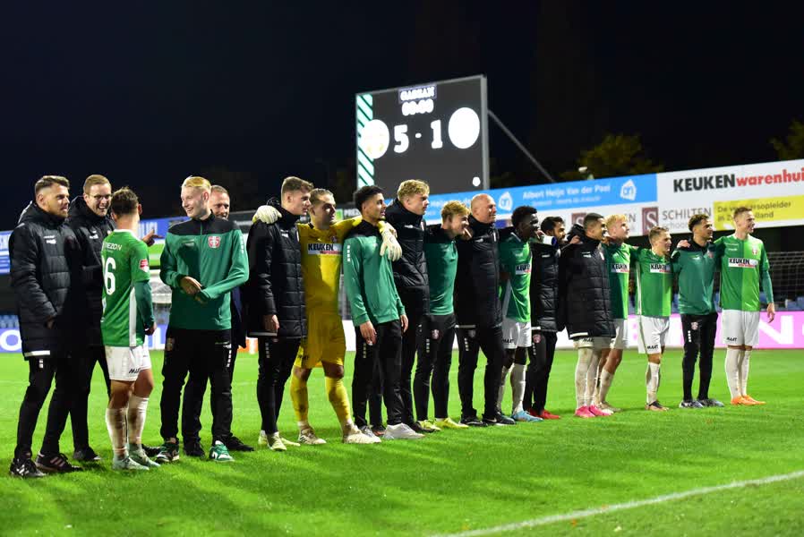 In eigen stadion kende de thuisclub vrijdag een bliksemstart. Binnen twee minuten was de 1-0 al een feit en na 25 minuten stond er al een 3-1 tussenstand op het scorebord. Na rust breidde FC Dordrecht de voorsprong verder uit door goals van middenvelder Rocco Robert Shein en een rake penalty van captain Mathis Suray.