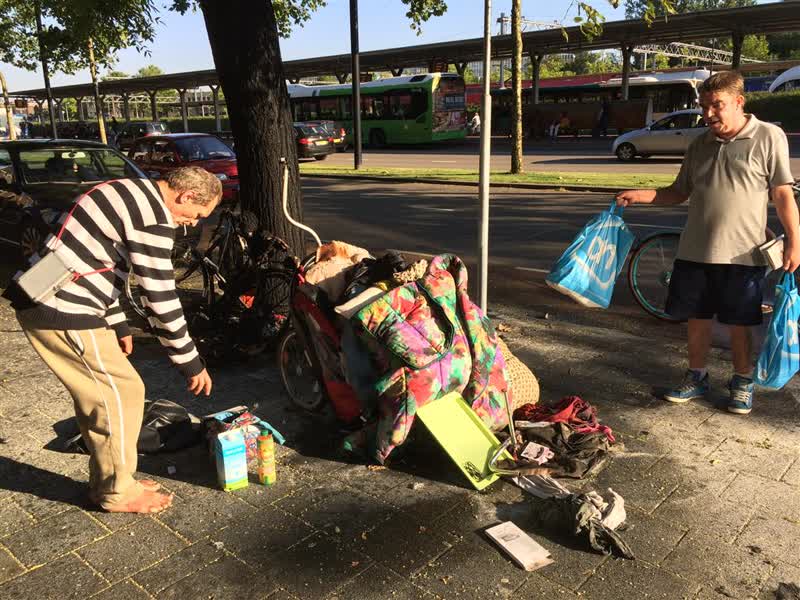 Donderdagavond is de fiets en een bagagewagen van een dakloze man in de brand gestoken.