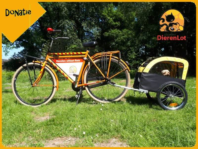 Dierentehuis Louterbloemen heeft een nieuwe aanhanger voor achter de fiets gekregen. Het is een kadootje van Stichting Dierenlot. In het bakje kunnen honden zitten en zo veilig vervoerd worden.