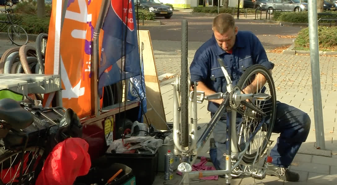 Na een aantal weken niet aan het werk te zijn is de fietsende fietsenmaker John Kassing weer terug. Woensdag stond hij weer op het Vogelplein, nadat hij was gestopt na beschuldigingen van diefstal.