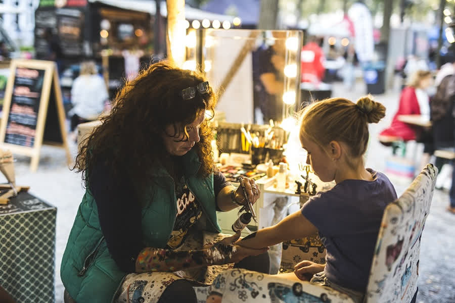 Ook de kinderen worden vermaakt. Er is kindertheater, er kan worden geknutseld en natuurlijk geschminkt.