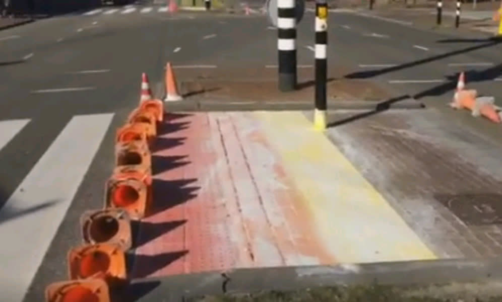 Voor het station worden vandaag Gaybrapaden aangelegd. Dat zijn zebrapaden in de kleuren van de regenboog.