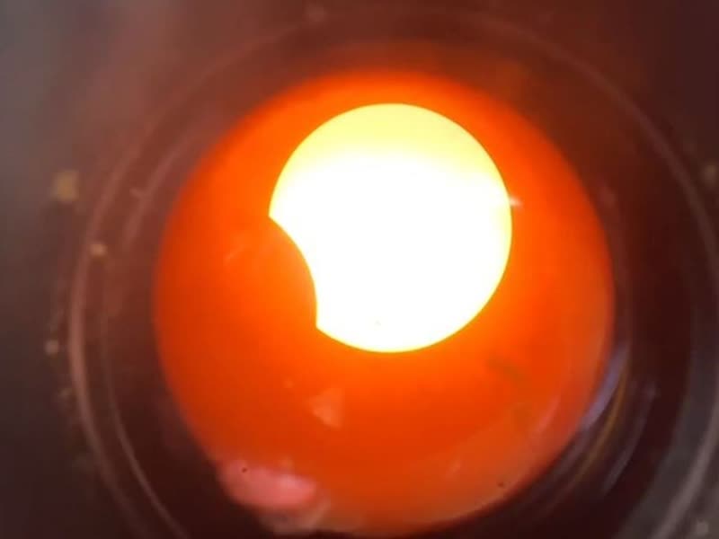 Iets na elven schoof de maan tussen zon en aarde, waardoor de zon gedeeltelijk verduisterd werd. De verduistering was maximaal om 12:05 uur: toen werd 22 procent van de zon bedekt.