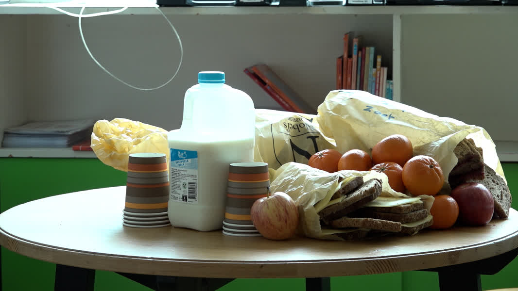 Bouwmeester vervolgt: ‘Leerlingen hebben de keuze uit boterhammen met kaas of jam. Vorig jaar betaalden namen een aantal bedrijven de kosten van het brood op zich, nu doet het jeugd-educatiefonds dat. ZIj zorgen ook voor fruit en melk op school. Op deze manier kan er een gevarieerde en gezonde lunch aan de leerlingen worden voorgeschoteld.”
