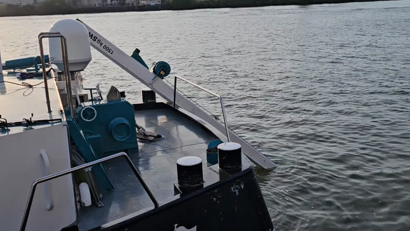 Een schip botste maandagavond rond 20.00 uur met een uitschuifbare mast tegen de spoorbrug tussen Do...