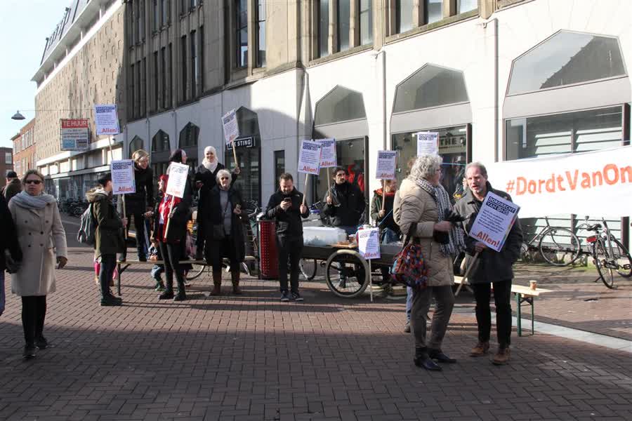 Meerdere mensen demonstreren donderdagochtend in en om het hoofdkantoor van Fokker in Papendrecht. D...