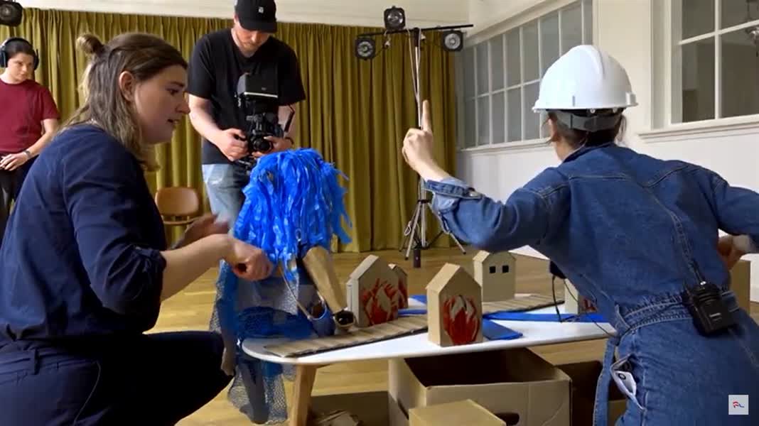Marjolijn Gunst en Themba Schmitz van Theater Tortilla waren maandag in het Weeshuistheater te vinden voor opnames van hun voorstelling ‘Wat Water Weet’. In het kader van 800 jaar stad heeft het basisschoolbestuur van Openbaar Primair Onderwijs Dordrecht (OPOD) de twee gevraagd om de voorstelling te maken.