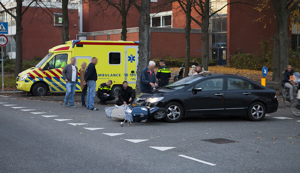 De scooterrijder werd aangereden door een auto en raakte daarbij gewond. De oorzaak is hoogst waarschijnlijk dat de autobestuurder geen voorrang gaf. Over de aard van verwondingen is niets bekend.