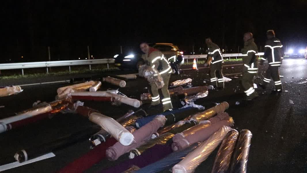 Een vrachtwagen is vrijdag op de A16 richting Breda zijn lading verloren. Ingepakte gordijnen lagen over de weg uitgestrooid en het verkeer werd via de vluchtstrook geleid.