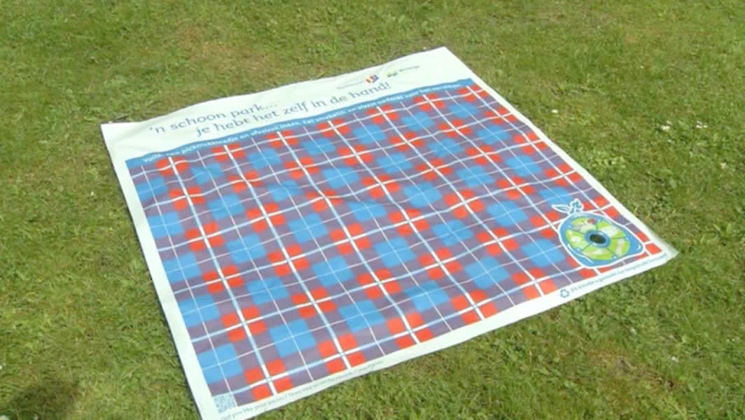 Om de stadsparken in Dordrecht schoon te houden worden er gratis picknickkleedjes uitgedeeld. Deze kleedjes kunnen gemakkelijk omgetoverd worden tot vuilniszakken.