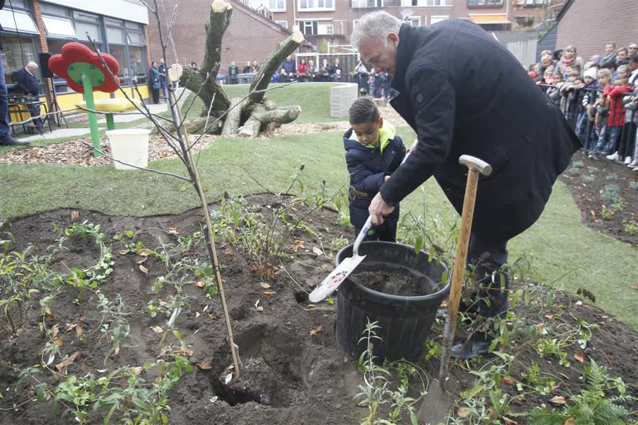 Bij de Wantijschool aan de Maasstraat is vanmiddag een groen schoolplein geopend. Kinderen hebben vanochtend de laatste struiken geplant en daarna een moestuin ingericht.