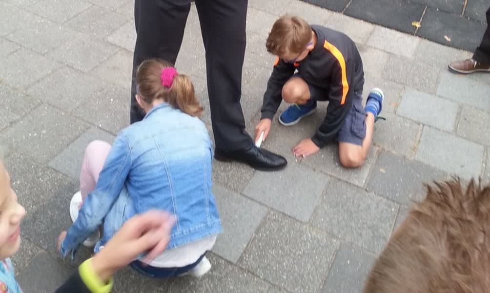 Wethouder Rik van der Linden gaf vanmorgen de aftrap voor de actie Groene Voetstappen in Dordrecht. Hij liet zijn voetstappen vastleggen op het schoolplein van de Ds. J. Polyanderschool. In Dordrecht doen negen scholen mee.