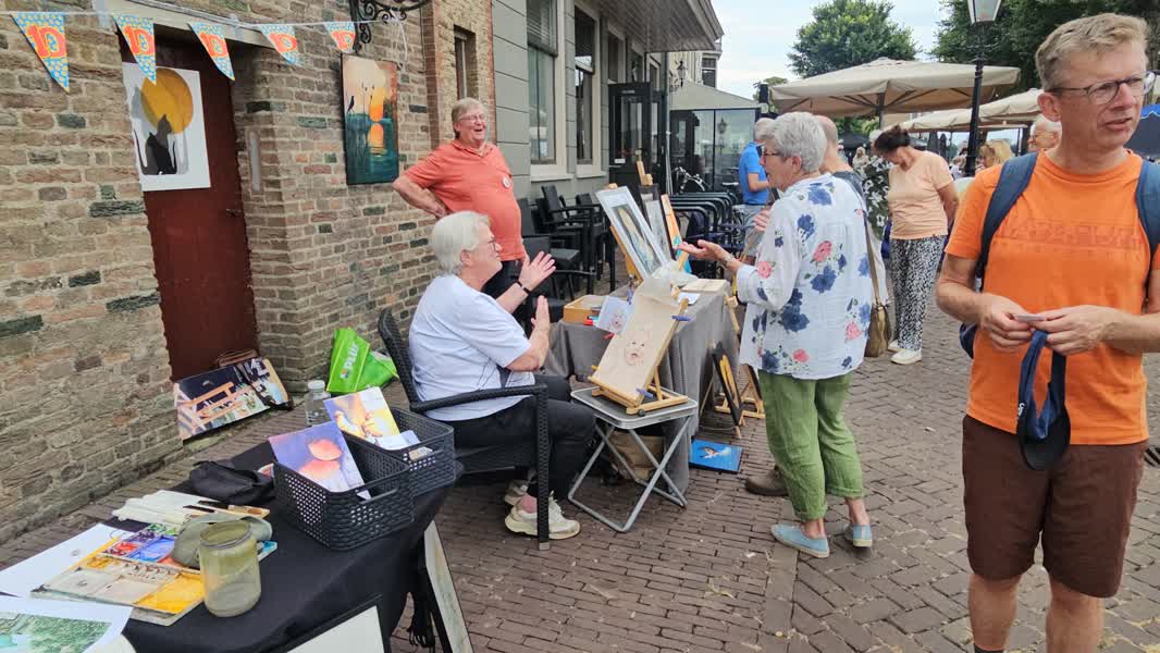 Het is druk op de eerste zondag van Kunsthoofd. Bezoekers wandelen langs schildersezels en kraampjes. Overal zijn kunstenaars druk in de weer met het maken van een schilderij.